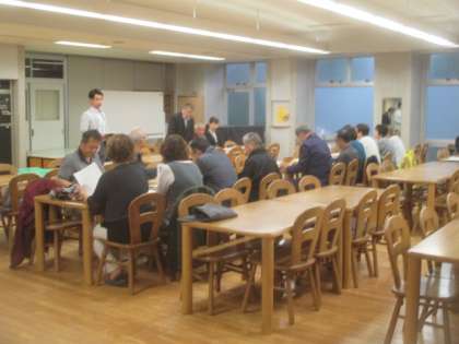 6月24日(土)に行われる、八幡山小学校避難所運営訓練の、地域向けの事前説明会がランチルームで行われました。当日ご協力いただく警備会社の方々に来ていただき、各担当に分かれて説明や話し合いが行われました。後半には投光器の明かりで、マンホールトイレを設置したり、バーナーの組み立てを行ったりして、より実践に近い活動になりました。関係者の皆様には、夜遅くまでありがとうございました。明後日の15日(木)には、PTA向けの説明会が開催されます。