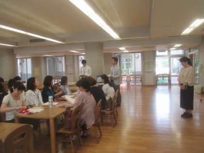 6月24日(土)に行われる、八幡山小学校避難所運営訓練の事前勉強会が、ランチルームで行われました。当日参加、ご協力いただくPTAの方々に、その概要や目的などについて、上北沢まちづくりセンターの職員の方々から説明をしていただきました。当日もよろしくお願いいたします。