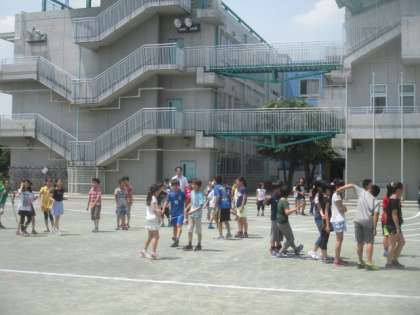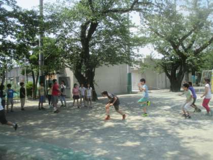気持ちのよい青空の下、久しぶりの金スポが中休みに行われました。各クラス、みんなで協力して、長縄跳びの記録に挑戦します。声をかけ合い、励ましながら、いい汗をかいていました。