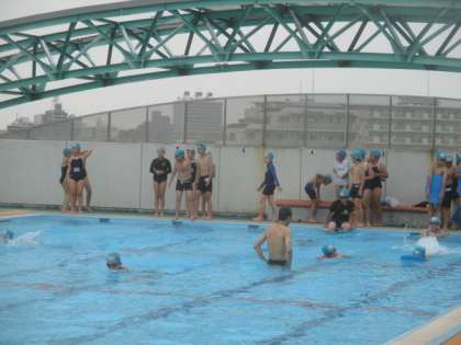 3・4校時、梅雨空の下、5年生はプールに入りました。少し気温が低めでしたが、水温が高く、子どもたちは自分のめあてを意識して、25mコースでの練習を繰り返しました。みんなたくさん泳いだので、今日は疲れたと思います。ゆっくり身体を休めてくださいね。