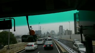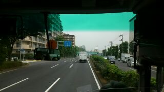 今回はバスでの移動です。都内の景色を見ながら、過ごしましたが、さすが梅雨時です。新宿の高層ビルも霞んでいます。