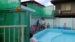 八幡山幼稚園の年少さんのプールの様子です。