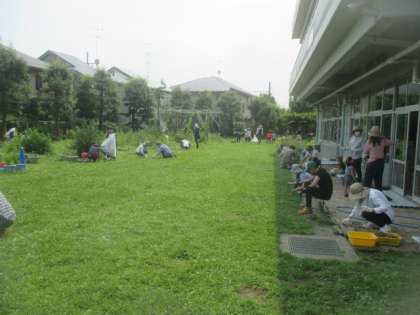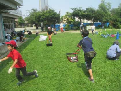 今年度2回目となる芝生の整備が行われました。前回も暑い中での作業になりましたが、今日はさらに日差しが強く、熱中症に気をつけながらの活動となりました。適宜水分を補給しながら取り組んでいただき、30分後にはかなりすっきりしました。次回は、運動会直前の9月に行います。関係者の皆様には、今後ともどうぞよろしくお願いいたします。