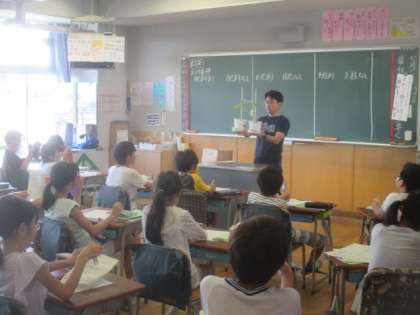 高学年の午後の授業の様子です。5年2組では理科の授業。「種子の発芽と成長」の単元で、実験の結果を比較して、観察記録をとっていました。6年生は、算数少人数の授業です。「曲線のある形の面積」の学習で、複雑な形の面積の求め方を考える内容でした。午後も集中して課題に取り組めるところは、さすが高学年です。