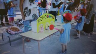 八幡山幼稚園の園庭で、「にこにこなつまつり2017」が、行われました。保護者の皆さんが「ワニワニパニック」「ボール投げ」などの楽しいブースを開いてくれました。