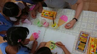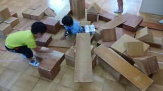 今日は、八幡山幼稚園の終業式です。終業式は、11:15からです。朝の年少さんは、お仕度を終えて元気に中型積み木や絵の具で遊んでいました。