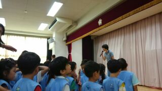 1学期頑張ったことのお話を園長先生や副園長先生からしていただきました。