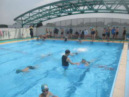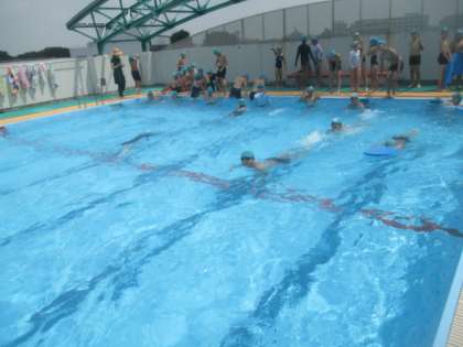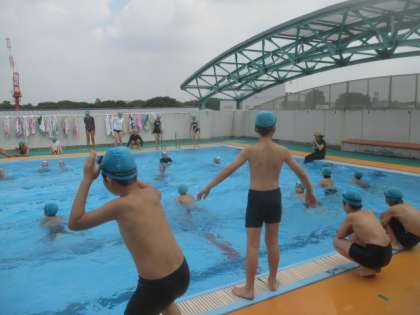 1・2校時に、6年生は今学期最後の水泳指導を行いました。今年度の自分の水泳のめあてを達成するために、今日は25mのコースを使って、課題別の練習をしました。どの子みんな一生懸命に練習に励み、気分よく笑顔で1学期の水泳の学習を終えました。夏休みの水泳指導にも積極的に参加してくださいね。