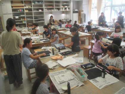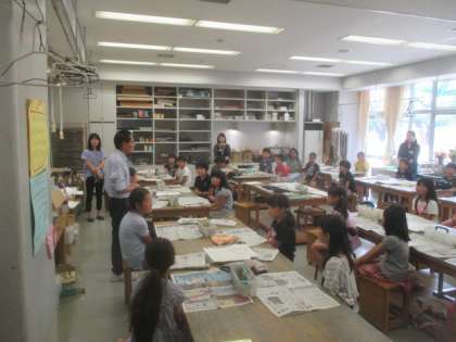今日は全部で7講座が開講されます。図工室では、昨年まで本校で図工を教えていただいていた松浦先生が講師を務めます。「魔法の筆」と題して、水墨画に挑戦しました。懐かしい先生の教え方に、子どもたちはとてもうれしそうでしたが、説明は真剣に聞いて、集中していました。