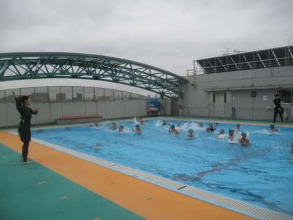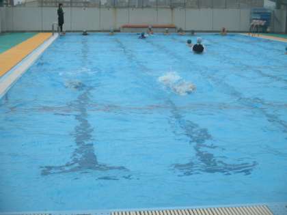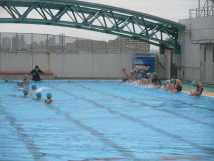 今朝は少し肌寒い朝になりましたが、水泳指導は何とか条件を満たしているので実施しています。1回目は高学年です。さすがに参加者は、いつもよりも少なくて寂しいですが、考えようでは、こんな広いプールを貸し切り状態で使えてラッキーです。気温よりも水温が高いので、プールから上がらずに、たくさん水の中につかって練習に励むことができました。