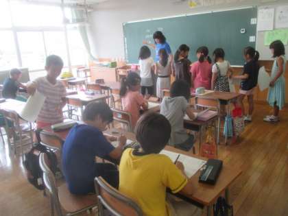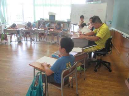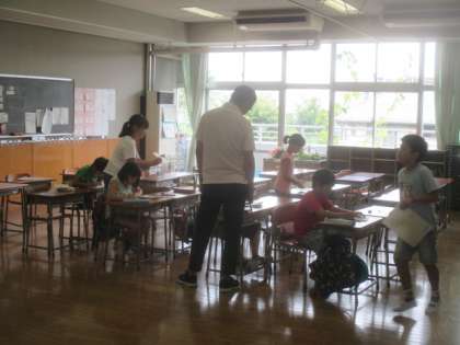 今日も水泳指導前に、3年生が補習授業でがんばっています。たくさんのプリント課題を黙々と取り組んでいました。しっかり勉強した後、プールでしっかり泳いで、今日も1日健康に過ごしましょう。