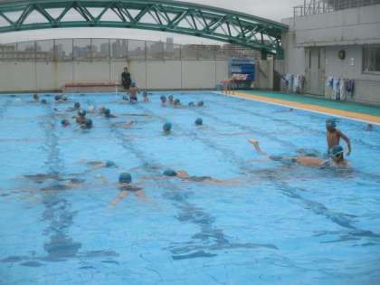 3回目は中学年。気温もだいぶ上がってきていて、参加者も多く、3回のうち一番元気でした。担任の先生も指導に参加して、水中での「猛獣狩り」で盛り上がりました。明日も天気が微妙のようですが、雨が降らなければ実施する予定ですので、参加してください。