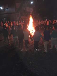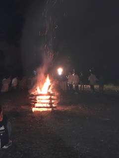 火を囲んでのダンスタイム。定番の「マイムマイム」に「ジンギスカン」を楽しく踊りました。