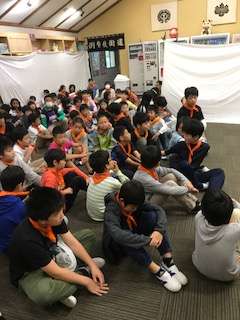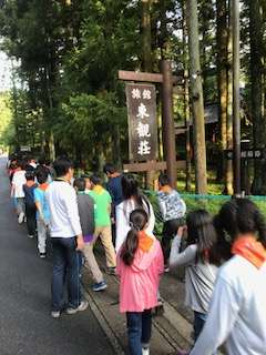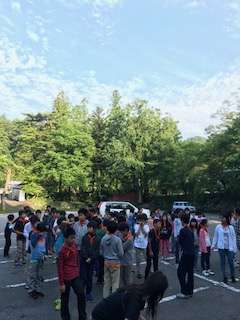 朝会のために、全員集合して移動します。今日もしっかり時間前行動ができています。