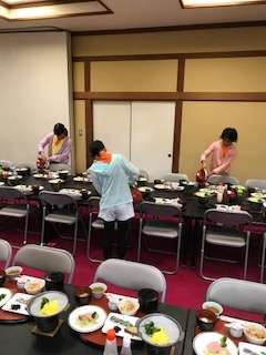 食事係が準備の手伝いをします。