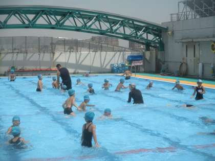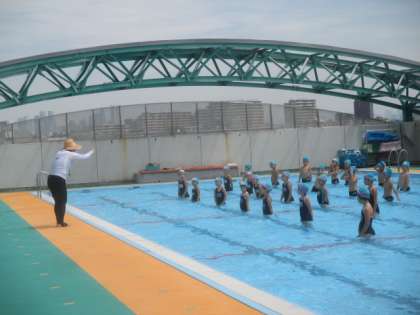 今日も夏の日差しがまぶしい中、水泳指導が行われました。3回目は1・2年生の時間です。大好きな『エビカニクス』で元気に準備運動をして、今日もたくさん泳ぎました。明日は夏休みの水泳指導の最終日で、最後の検定があります。練習の成果を存分に発揮してくださいね。