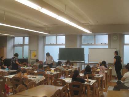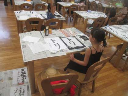 文化庁芸術振興費補助金伝統文化親子教室事業の一環として、6月より開催されている「八幡山小学校 習字教室」の第3回目が、ランチルームで行われました。1・2年生を対象に、地域で指導をしていただいている保護者の方々が中心となって行っていただいています。少人数で丁寧に指導をしていただけるので、子どもたちも安心して書道に親しむことができていました。次回は9月2日(土)に行われます。全6回の開催で、最終的にできあがった作品は掛け軸にして展示する予定になっています。お楽しみにしていてください。