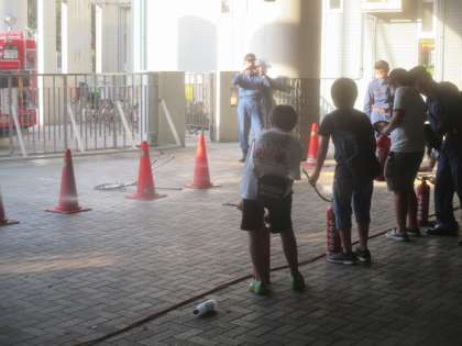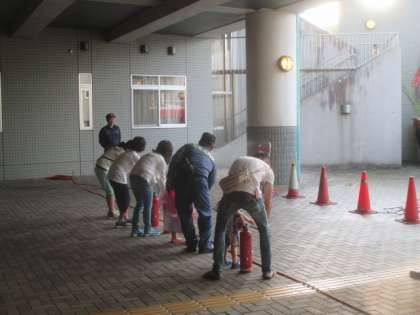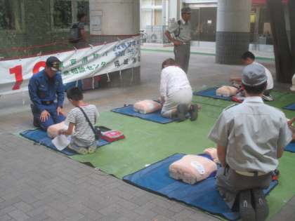 防災教室では、AED(自動体外式除細動器)の訓練や消火器体験が行われました。AEDについては、初めて体験する参加者も多く、ガイダンスに従いながら真剣に取り組む姿が見られました。