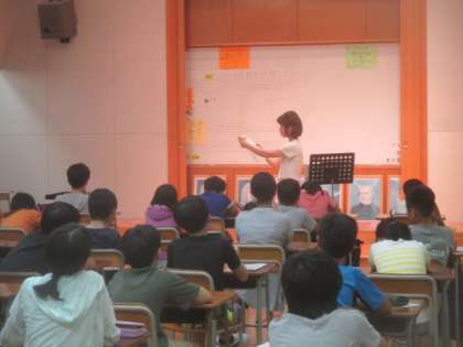 6年2組の5校時は、2学期最初の音楽の授業です。運動会の歌の練習や、鑑賞した楽曲の感想を紹介し合う授業でした。6年生には、学校行事を運営し、中心となって盛り上げていくという役割があります。自覚をもって授業に臨み、9月の運動会、11月の学芸会を成功させましょうね。