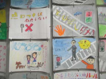 PTA校外部が、全国交通安全運動に向けて夏休みに募集した「交通安全ポスター」が、2階のフロアに掲示されました。例年以上の応募数があり、八幡山小学校からは入選者が3名出ました。ぜひ立ち止まって、じっくり鑑賞してみてくださいね。