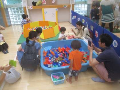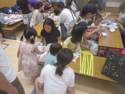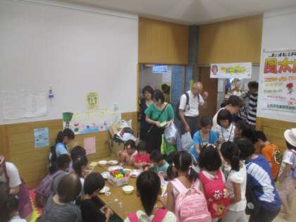 館内は子ども実行委員によるゲームコーナーで大にぎわいでした。趣向を凝らしたいろいろなゲームを企画し、幼稚園児から中学生、そして保護者も一緒になって楽しんでいました。八幡山小や上北沢小の子どもたちだけでなく、緑丘中学校の生徒さんもスタッフとして大活躍していました。