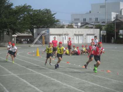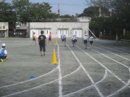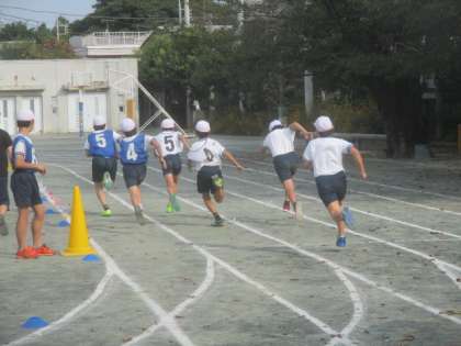 今朝は、高学年リレーの男子の朝練の日です。昨日の女子に続き、男子も今日から本格的な練習が始まりました。チームで声をかけ合って、バトンパスを繰り返します。選手の息づかいが聞こえてきそうで、朝から気合の入った練習をしていました。