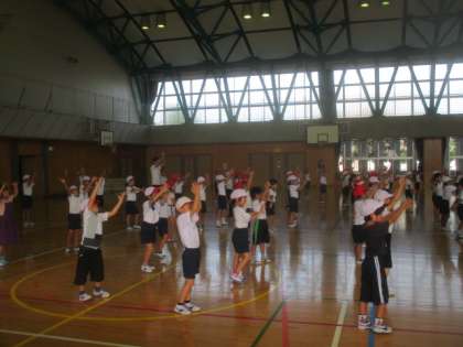 1年生の運動会の練習も本格的になってきました。体育館では表現種目の練習で、カッコいいポーズで決めている1年生の姿が見られました。さらに練習を積んで、完成度を高めていきます。1年生の演技を、どうぞ楽しみにしていてください。