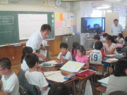 11月の研究発表会に向けて、講師の石井雅幸先生と石川喜三郎先生にお越しいただき、3年生と4年生の授業を参観していただきました。自分の考えを伝え合う活動を、授業の中で積極的に取り入れながら、子どもたちの主体的な学びを育んでいこうと、先生たちも真剣に授業の準備を進めています。それにこたえて、子どもたちも意欲的に課題に向き合おうとする姿が見られました。これからも理科の授業を中心に、引き続き研究を進めていきます。
