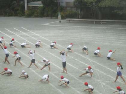 各学年の表現種目の練習も、本番同様に校庭で行われています。4年生の「ソーラン節」は、細かい一人一人の隊形も確認しながら進められていました。さらに衣装をつけて、自作の大漁旗も加わり、練習は徐々に本格的になっていきます。今年も4年生のカッコいい舞が披露されますので、期待していてください。