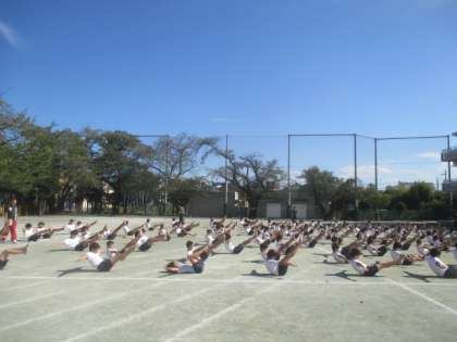 高学年の表現種目「集団行動・組体操」は、いよいよ校庭での練習に突入しました。今日は、全体の流れとそれぞれの技の位置確認をしました。残暑の厳しい日差しが照りつける中、砂だらけになっておよそ1時間半。一通りの動きを確認することができました。あと1週間で仕上げていきます。体調管理に気をつけてがんばりましょう。