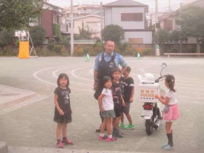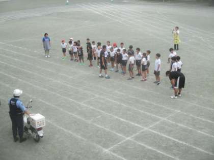八幡山小学校の運動会は、開会式に聖火ランナーの入場が行われます。今日は、先導していただく八幡山駐在所の武藤巡査長さんと、代表児童の顔合わせが行われました。本番でもよろしくお願いします。