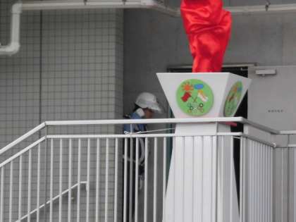 子どもたちで受け渡され、引き継がれた聖火が、聖火台に点火されました。会場からは大きな拍手があがりました。
