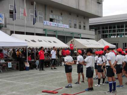 すべての競技が無事終了しての閉会式です。まずは成績発表です。白組の逆転はなったのか、緊張の瞬間です。