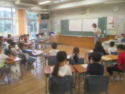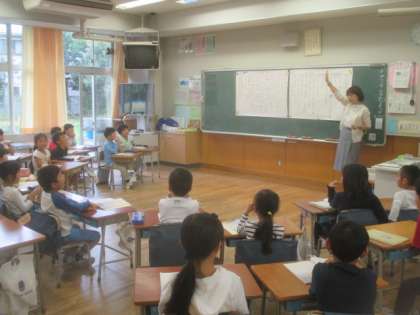 1年2組の1時間目は、日本語の授業。宮澤賢治の「雨にもまけず」を音読しました。日本語の響きやリズムを味わいながら、楽しく読むことができていました。繰り返し音読して、覚えてしまいましょうね。
