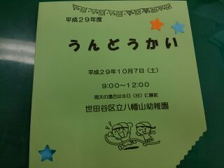 八幡山幼稚園の明日10月7日(土)の運動会は、雨天が予想されているため、10月8日(日)に延期いたします。