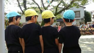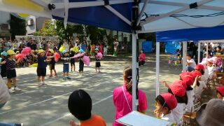 八幡山幼稚園の運動会です。沢山の保護者の方、来賓の方に来園していただきました。開会式、応援とにぎやかに始まりました。。