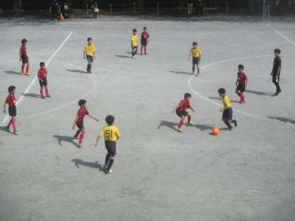 本校のサッカークラブである八幡山FCの子どもたちが、校庭で練習試合を行っていました。選手の中には、昨日からのお泊まり会に参加していた子もいましたが、元気よくボールを追いかけていました。今日1日熱戦が繰り広げられます。
