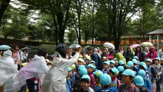 八幡山幼稚園の遠足は、雨コースのサンシャイン水族館です。ちょっと、雨降りの中でしたが、希望ヶ丘公園に集合して無事、3台のバスに乗り込みました。すぐにシートベルトをして、安全を確保しました。