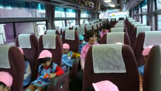 運転手さんにも、しっかりご挨拶をして出発しました。大型バスの歌を歌って、運転手さんを応援しました。
