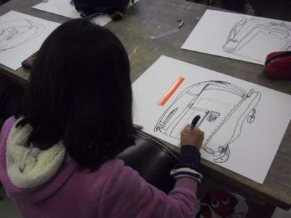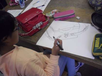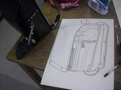 6年生の図工の課題は、『ぼくの、わたしのランドセル』。自分のランドセルを持ち込んで、いろいろな角度から写生しました。小学校入学以来、毎日お世話になってきたものですので、とても愛着があるはずです。どの子も感謝の気持ちを込めて、ていねいに描いていました。