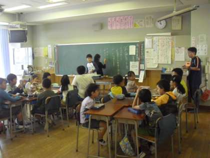 今日の4時間目は、今年2回目の「なかよし学級」です。全学年がそろった縦割り班での活動ですので、6年生のリーダーが中心となり、今回は『お店を開こう』の話し合いをしました。楽しい会になるように、今後もみんなで協力しながら活動を進めていきます。