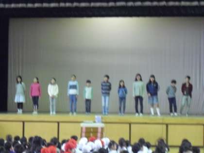 代表委員の終わりの言葉で、今年度の開校記念集会は無事終了しました。代表委員の皆さんは、この集会の準備に加えて、司会・進行などの運営までみんなで協力して、とても一生懸命がんばってくれました。ご苦労様でした。