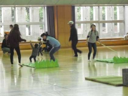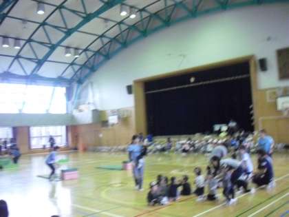 近隣にある区立松沢保育園の運動会が、本校体育館で行われました。あいにくの雨で校庭が使えませんでしたが、それぞれの年齢の園児たちが、かわいらしい演技を披露していました。たくさんの保護者の方々が参観し、体育館は大きな拍手と歓声が鳴り止みませんでした。本校に在学している兄姉も保護者競技に参加するなど、楽しい時間を過ごしていました。