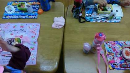 大きなお部屋と大きなテーブルと椅子で、ちょっと緊張しながら、お弁当がスタートしました。徐々に慣れてきて、楽しいお弁当の時間になりました。