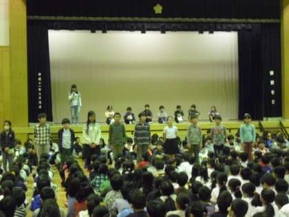 今朝の児童集会は、5・6年生による後期委員会の紹介でした。委員会ごとに児童が整列し、委員長は舞台の上に立って、活動内容や全校児童へのお願いなどを話しました。よりよい学校生活が送れるように、5・6年生の皆さん、後期もよろしくお願いします。