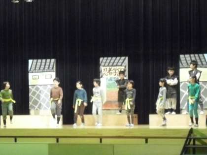 1・2時間目は、4年生が学芸会の練習に余念がありません。舞台の上で演じる子どもたちに、先生からの細かい演技指導が入ります。子どもたちも真剣な表情で指導を聞き入れて、さらに自分の演技を高めようとしています。残り1週間あまりになりますが、すてきな劇になるように、引き続き練習に励んでほしいです。