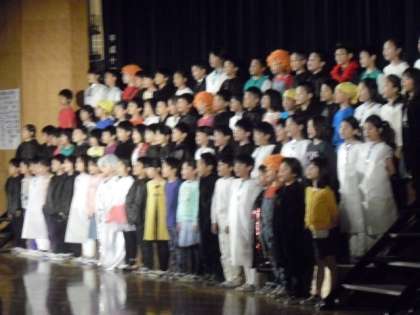 校長先生からは、練習してきたことを精一杯に出し切って、素敵な1日にしましょうというお話がありました。プロローグとして、3年生が舞台に上がり、器楽クラブの児童の演奏による『学芸会の歌』を、全校児童で歌いました。