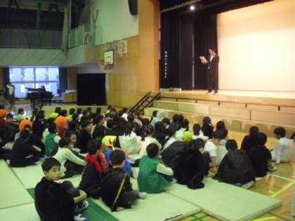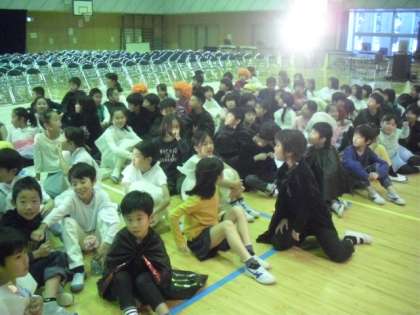体育館では、トップバッターの3年生が早々に準備をして先生の指示を聞いています。昨日とは違った緊張感の中、8時45分開演です。