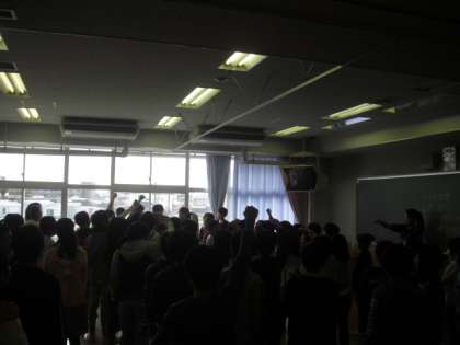 最後は6年生。出演前に全員で気合いを入れて、緊張感を高めます。