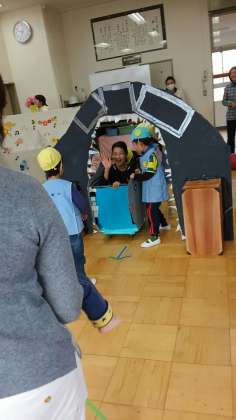 八幡山幼稚園の年長さんの協同製作です。水族館の中には、ジェットコースターもありました。坂道を下る本格派です。